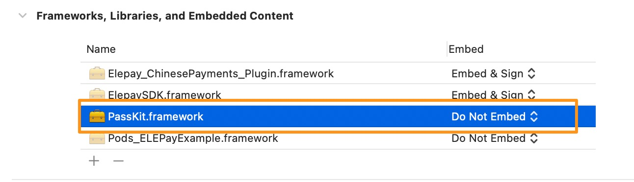 - Objective-C のプロジェクトで ElepaySDK for iOS を手動導入する場合、必要なシステム Frameworks を自動で導入出来ない事があるため、上記懸念点をクリアしでも問題が続く場合は、「PassKit.framework」を手動導入して再度試してください。