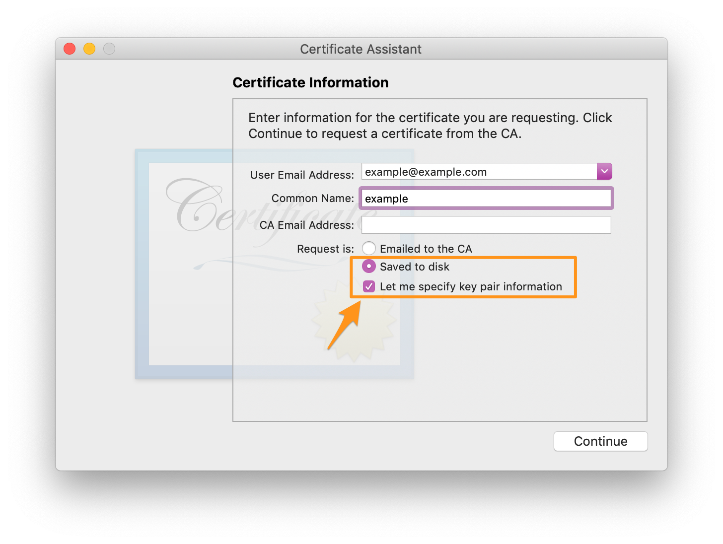 • CSR ファイルを作成する時、必ず「Let me specify key pair information」項目をチェックしてください。